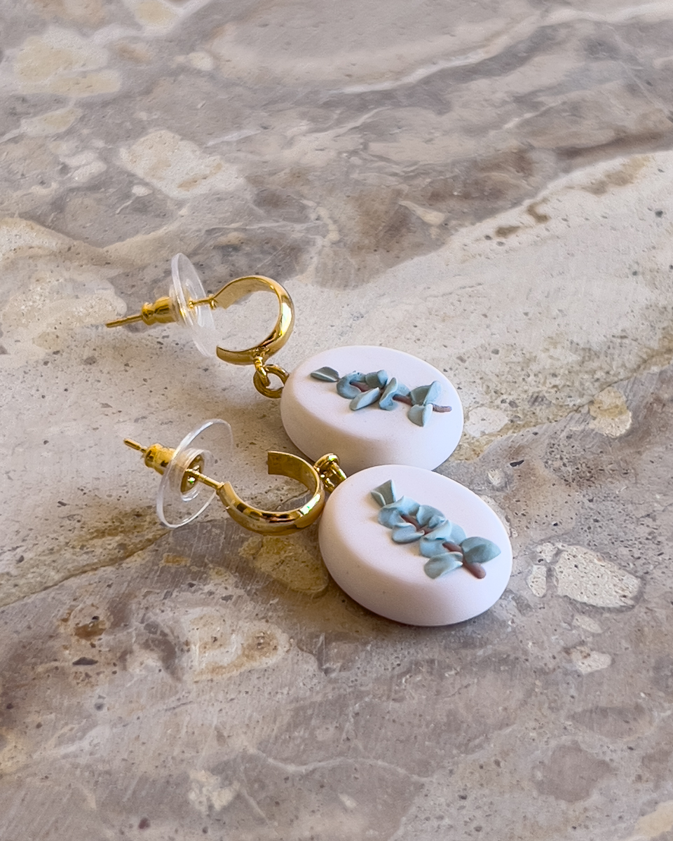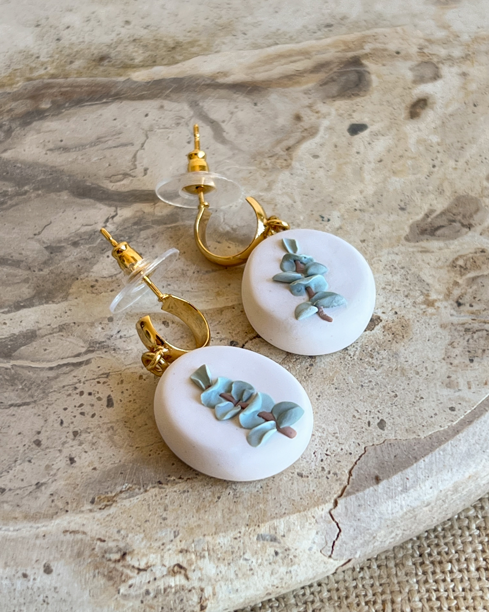 Earrings are made with polymer clay. Gold hoops are 18k gold plated.